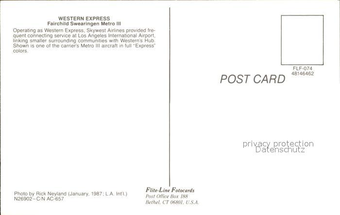 Flugzeuge Zivil Western Express Fairchild Swearingen Metro III postalisch nicht gelaufen Erhaltung siehe scans