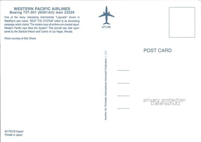Flugzeuge Zivil Western Pacific Airlines Boeing 737-301 N301AU postalisch nicht gelaufen Erhaltung siehe scans