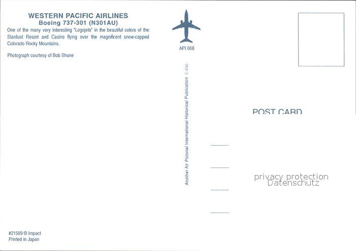 Flugzeuge Zivil Western Pacific Airlines Boeing 737-301 N301AU postalisch nicht gelaufen Erhaltung siehe scans