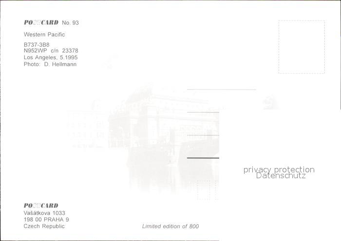 Flugzeuge Zivil Western Pacific B737-3B8 N952WP c/n 23378 postalisch nicht gelaufen Erhaltung siehe scans