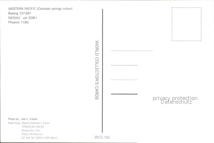 Flugzeuge Zivil Western Pacific Boeing 737-3B7 N372AU c/n 22951 postalisch nicht gelaufen Erhaltung siehe scans