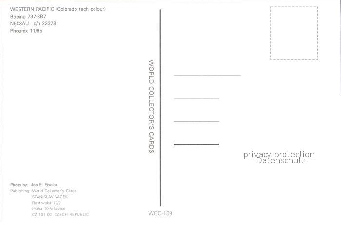 Flugzeuge Zivil Western Pacific Colorado tech Boeing 737-3B7 N503AU c/n 23378 postalisch nicht gelaufen Erhaltung siehe scans