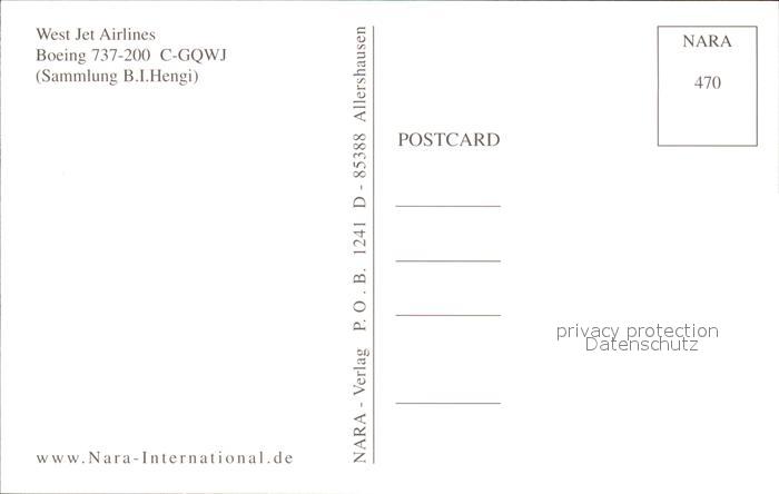 Flugzeuge Zivil Westjet Airlines Boeing 737-200 C-GQWJ postalisch nicht gelaufen Erhaltung siehe scans