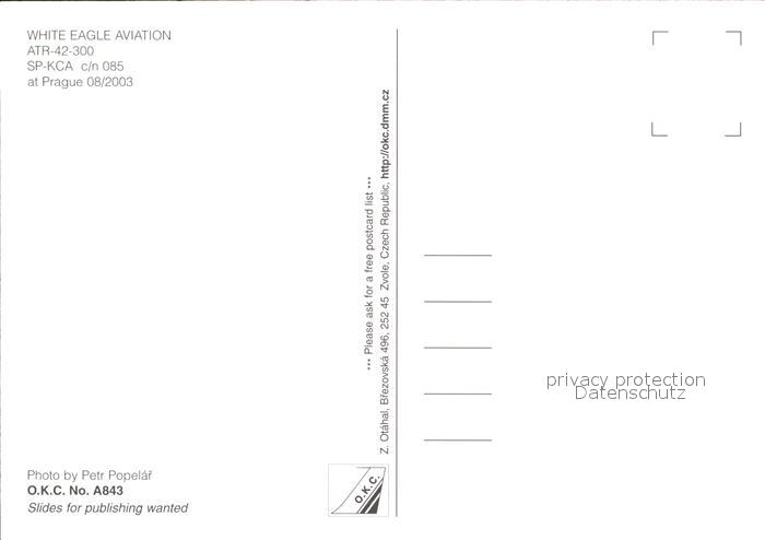 Flugzeuge Zivil White Eagle Aviation ATR-42-300 SP-KCA c/n 085 postalisch nicht gelaufen Erhaltung siehe scans