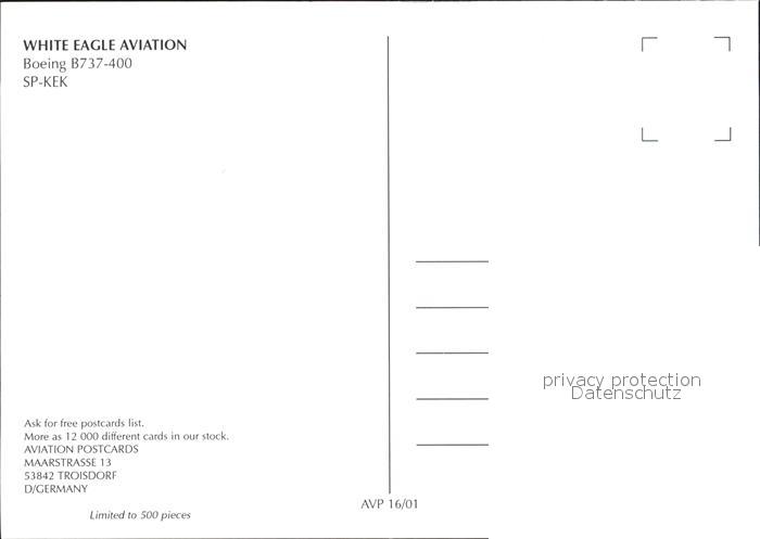 72289259 Flugzeuge Zivil White Eagle Aviation Boeing 737-400 SP-KEK KatCode 22120000001300