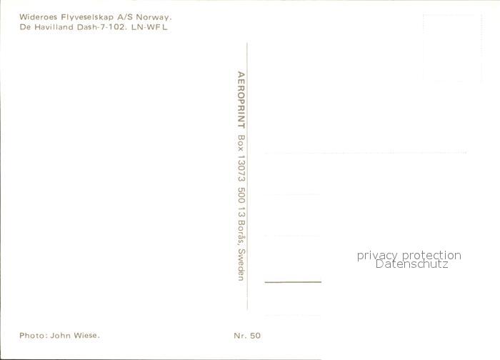 Flugzeuge Zivil Wideroes Flyveselskap A/S Norway Havilland Dash-7-102 LN-WFL postalisch nicht gelaufen Erhaltung siehe scans