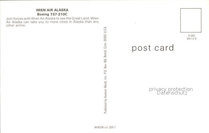 Flugzeuge Zivil Wien Air Alaska Boeing 737-210C postalisch nicht gelaufen Erhaltung siehe scans