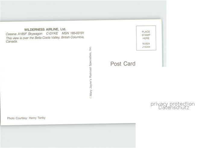 Flugzeuge Zivil Wilderness AirlineCessna A185F Skywagon C-GYKE postalisch nicht gelaufen Erhaltung siehe scans