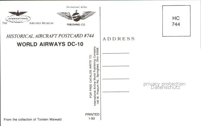 Flugzeuge Zivil World Airways DC-10 postalisch nicht gelaufen Erhaltung siehe scans
