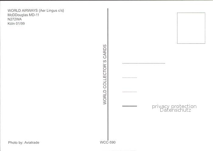 Flugzeuge Zivil World Airways McDDouglas MD-11 N272WA postalisch nicht gelaufen Erhaltung siehe scans
