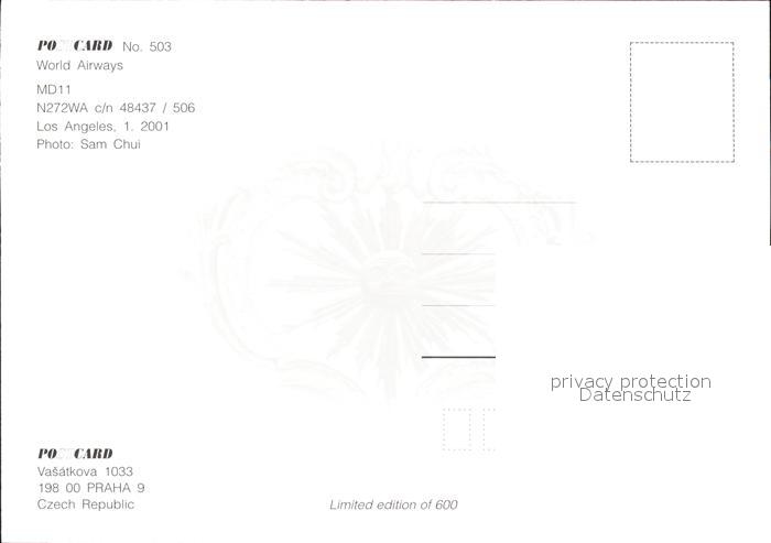 Flugzeuge Zivil World Airways MD11 N272WA c/n 48437/506 postalisch nicht gelaufen Erhaltung siehe scans