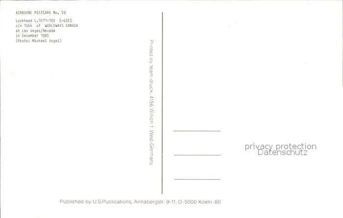 Flugzeuge Zivil Worldways Canada Lockheed L.1011-100 C-GIES c/n 1064 postalisch nicht gelaufen