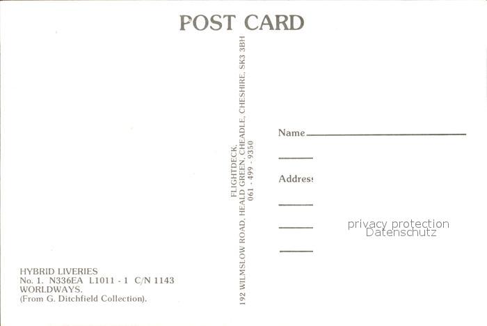 Flugzeuge Zivil Worldways N336EA L1011-1 C/N 1143 postalisch nicht gelaufen Erhaltung siehe scans