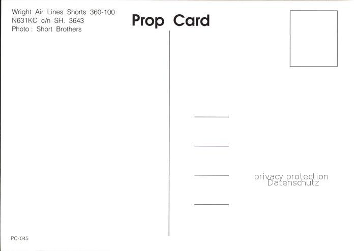 Flugzeuge Zivil Wright Air Lines Shorts 360-100 N631KC c/n SH. 3643 postalisch nicht gelaufen Erhaltung siehe scans