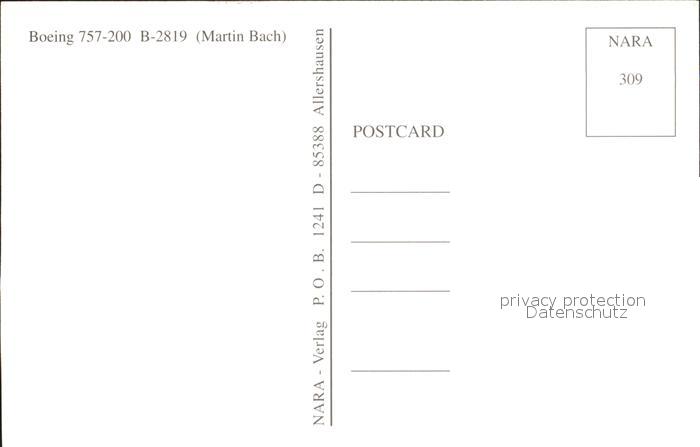 Flugzeuge Zivil Xiamen Airlines Boeing 757-200 B-2819 postalisch nicht gelaufen Erhaltung siehe scans