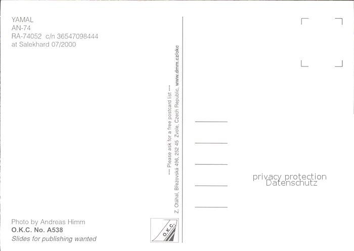 Flugzeuge Zivil Yamal AN-74 RA-74052 c/n 36547098444 postalisch nicht gelaufen Erhaltung siehe scans