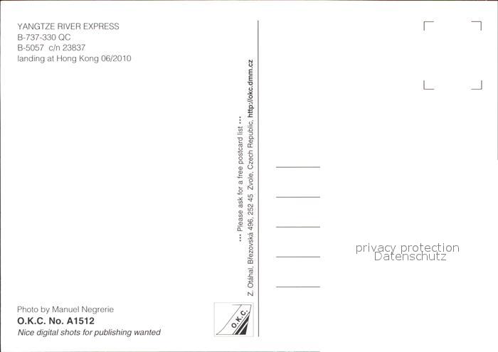 Flugzeuge Zivil Yangtze River Express B-737-330 QC B-5057 c/n 23837 postalisch nicht gelaufen Erhaltung siehe scans