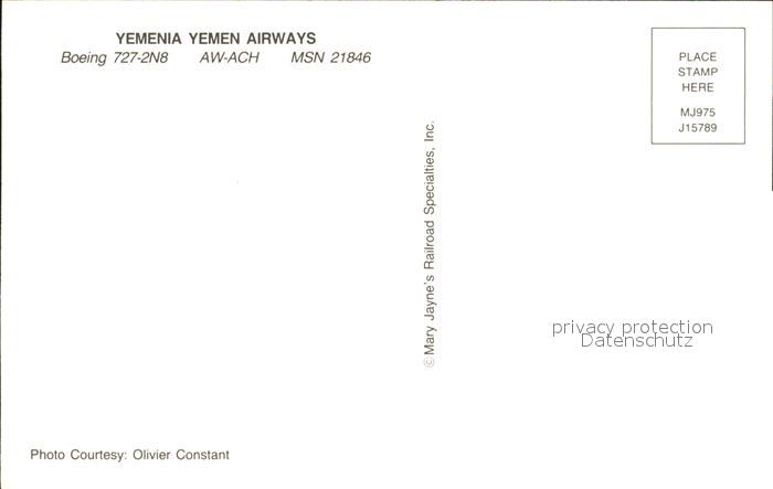 Flugzeuge Zivil Yemenia Yemen Airways Boeing 727-2N8 AW-ACH MSN 21846 postalisch nicht gelaufen Erhaltung siehe scans