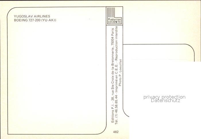 Flugzeuge Zivil Yugoslav Airlines Boeing 727-200 YU-AKI postalisch nicht gelaufen Erhaltung siehe scans