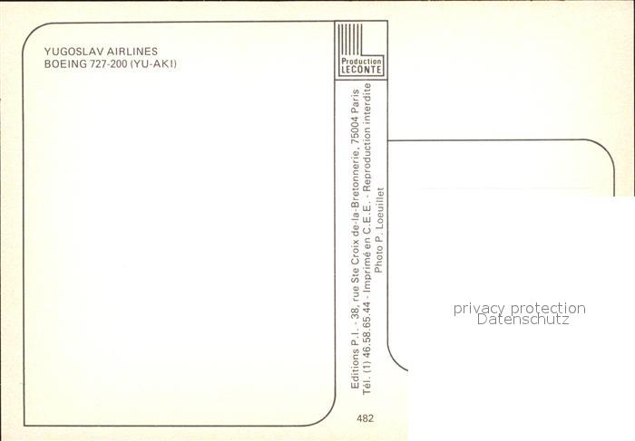 Flugzeuge Zivil Yugoslav Airlines Boeing 727-200 YU-AKI postalisch nicht gelaufen Erhaltung siehe scans