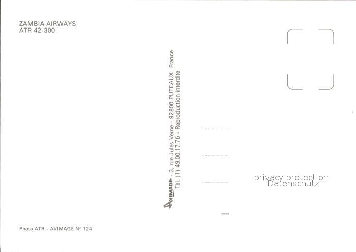 Flugzeuge Zivil Zambia Airways ATR-42-300 postalisch nicht gelaufen Erhaltung siehe scans