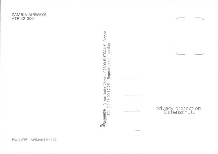 72262880 Flugzeuge Zivil Zambia Airways ATR 42-300 KatCode 22120000001300