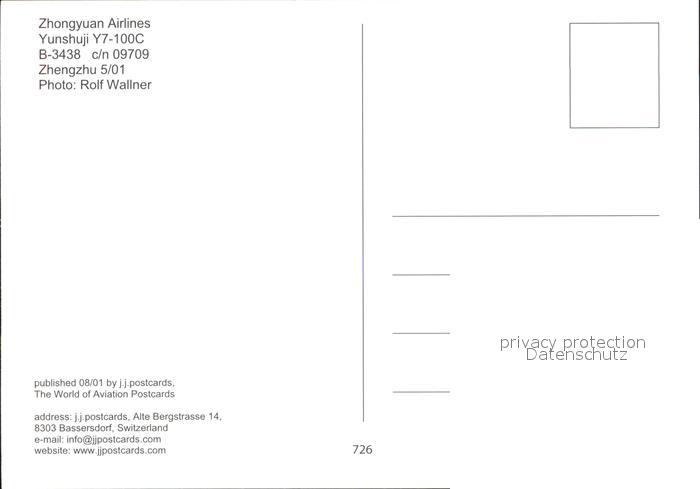 Flugzeuge Zivil Zhongyuan Airlines Yunshuji Y7-100C B-3438 c/n 09709 postalisch nicht gelaufen Erhaltung siehe scans