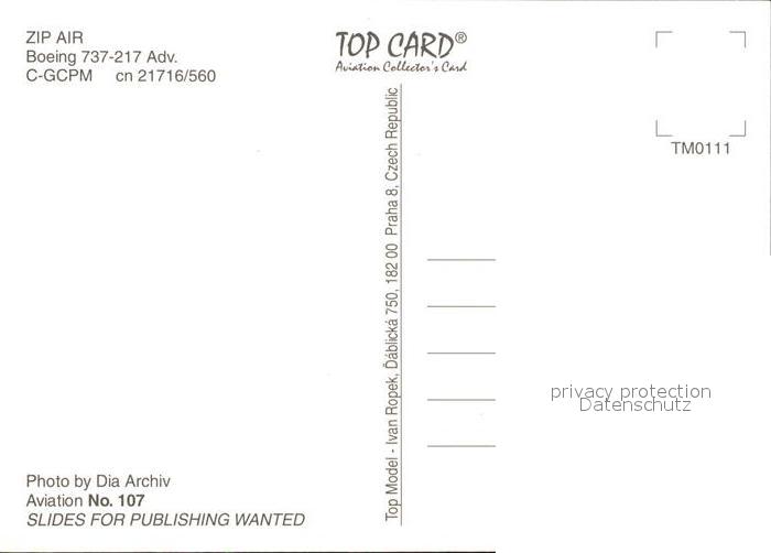 Flugzeuge Zivil ZIP Air Boeing 737-217 Adv C-GCPM cn 21716/560 postalisch nicht gelaufen Erhaltung siehe scans