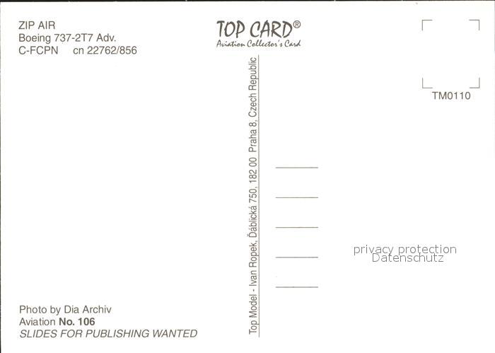 Flugzeuge Zivil Zip Air Boeing 737-2T7 Advanced C-FCPN cn 22762/856 postalisch nicht gelaufen Erhaltung siehe scans