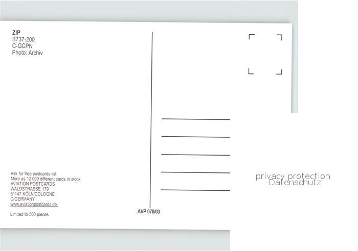 Flugzeuge Zivil ZIP B737-200 C-GCPN postalisch nicht gelaufen Erhaltung siehe scans
