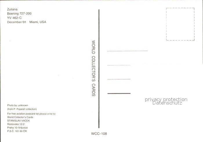 Flugzeuge Zivil Zuliana Venezuela Boeing 727-200 YV-462C postalisch nicht gelaufen Erhaltung siehe scans