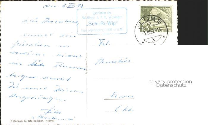 11630349 alte Postkarte Flums Sportheim der Ski-Riege A.T.V. Wipkingen postalisch gelaufen KatCode: 11470190565616