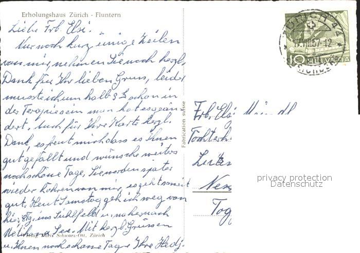 11635799 alte Postkarte Fluntern Zuerich Erholungshaus postalisch gelaufen Erhaltung siehe scans KatCode: 11470260920564