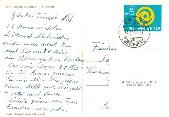 13854748 alte Postkarte Fluntern Zuerich Erholungshaus Zuerich postalisch gelaufen Erhaltung siehe scans [WerneD78] KatCode: 11470260920564