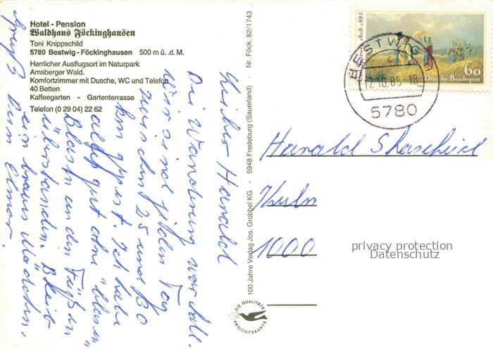 74023792 alte Postkarte Foeckinghausen Bestwig Hotel Pension Waldhaus Garten postalisch gelaufen Erhaltung siehe scans [FriedD77] KatCode: 11110005958008