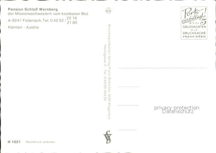 72012240 Foederlach Pension Schloss Wernberg postalisch nicht gelaufen Erhaltung siehe scans KatCode: 11390211020727