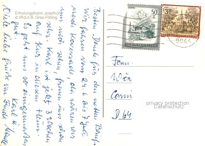 73222832 alte Postkarte Foelling Graz Erholungsheim Josefhof postalisch gelaufen Erhaltung siehe scans [FriedD77] KatCode: 11390221060101