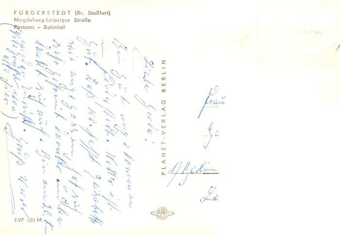73878534 alte Postkarte Foerderstedt Magedburg-Leipziger Strasse Postamt Bahnhof postalisch gelaufen Erhaltung siehe scans [FriedD77] KatCode: 11110015089095