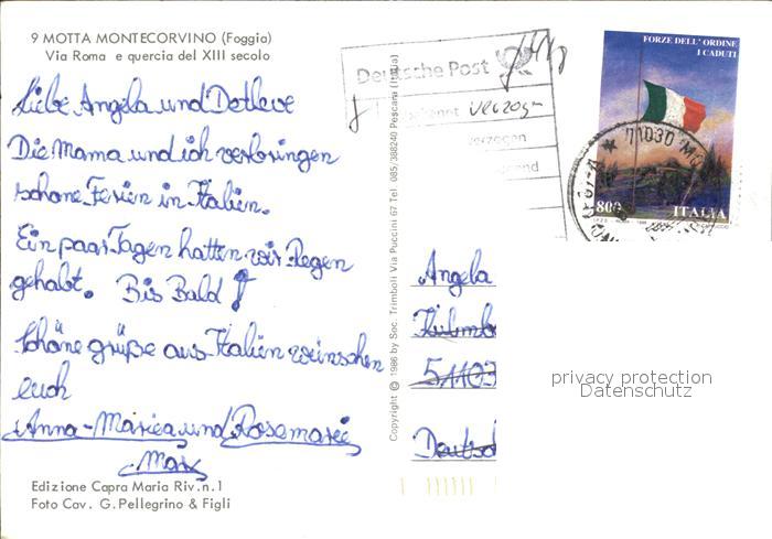 old postcard Foggia Motta Montecorvino postalisch gelaufen Erhaltung siehe scans