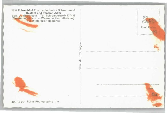40761425 Fohrenbuehl Gasthof Pension Adler postalisch nicht gelaufen Alte Ansichtskarte Postkarte Katcode 11110008325036