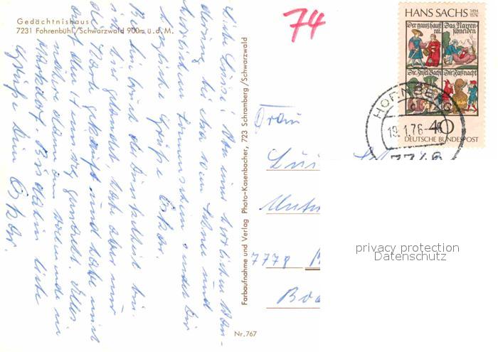 72840894 alte Postkarte Fohrenbuehl Gedaechtnishaus postalisch gelaufen Erhaltung siehe scans [PaolaD17] KatCode: 11110008325036