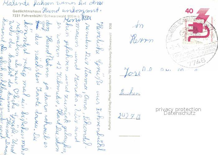 72837469 alte Postkarte Fohrenbuehl Gedaechtnishaus postalisch gelaufen Erhaltung siehe scans [PaolaD17] KatCode: 11110008325036
