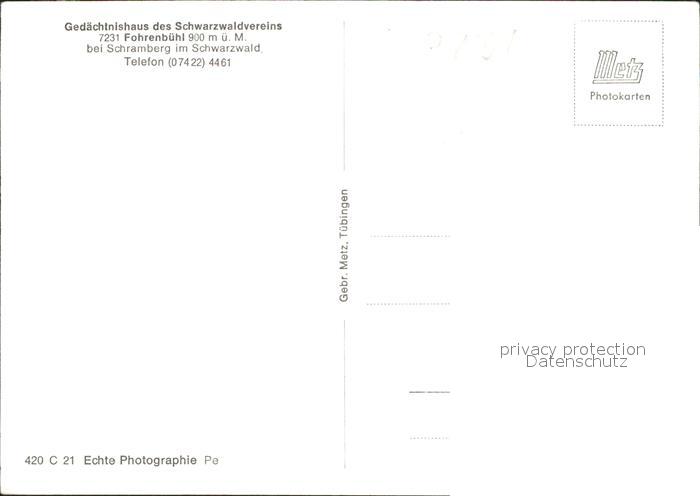 71894636 Fohrenbuehl Gedaechtnishaus Schwarzwaldverein postalisch nicht gelaufen Erhaltung siehe scans KatCode: 11110008325036