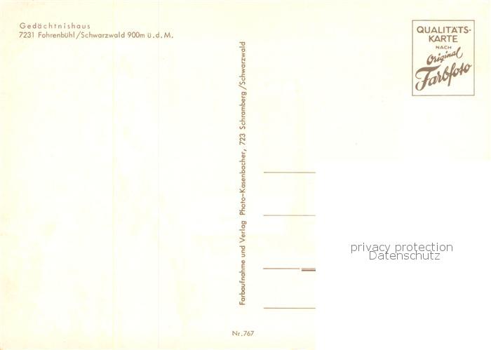 73785709 Fohrenbuehl Gedaechtnishaus postalisch nicht gelaufen Erhaltung siehe scans [WerneD78] KatCode: 11110008325036