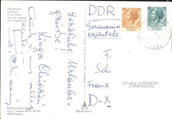 old postcard Follonica Fliegeraufnahme postalisch gelaufen Erhaltung siehe scans