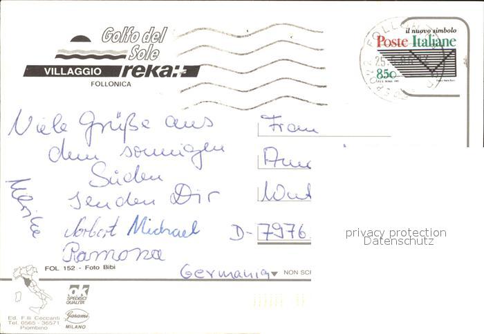 old postcard Follonica Golfo del Sole postalisch gelaufen Erhaltung siehe scans