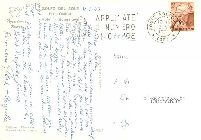 old postcard Follonica Hotel Bungalows Strand postalisch gelaufen Erhaltung siehe scans [KathaD81]