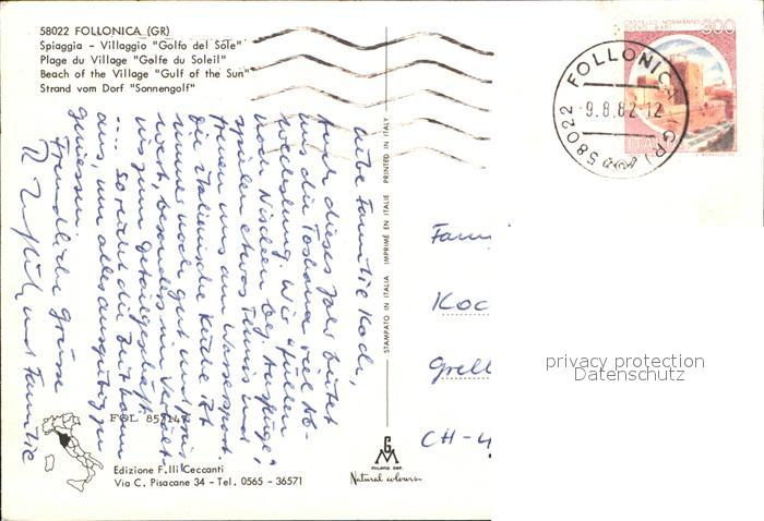 old postcard Follonica Strand vom Dorf Sonnengolf postalisch gelaufen Erhaltung siehe scans