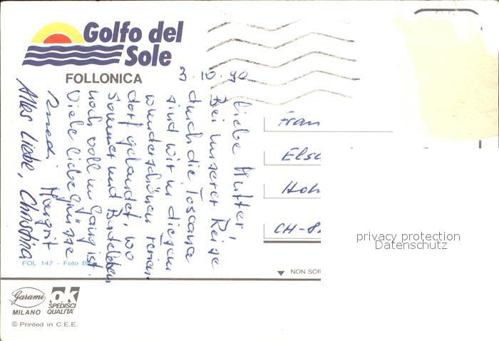 old postcard Follonica Strandpartie postalisch gelaufen Erhaltung siehe scans