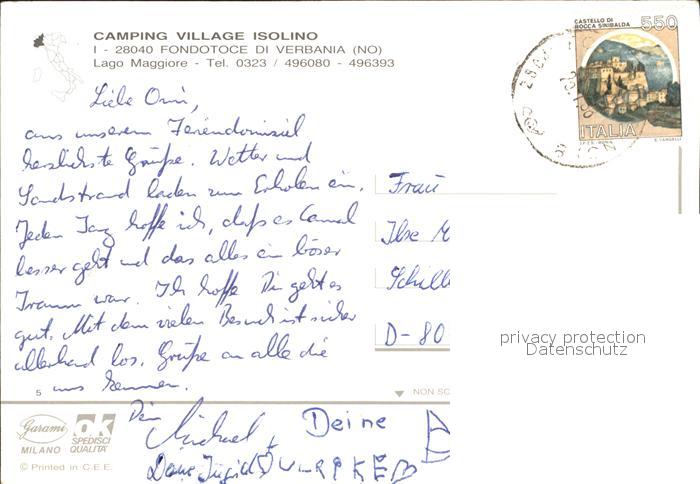 old postcard Fondotoce di Verbania Camping Village Isolino Boot postalisch gelaufen Erhaltung siehe scans
